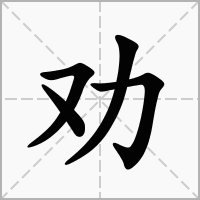 又如:劝赞(努力引见);劝心(努力进取之心);劝功(谓努力建功立业);劝务(勤勉努力);劝耕(努力耕种);劝业(努力从事其事业)