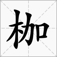 (形声。从木,加声。本义:连枷。脱粒用的农具)