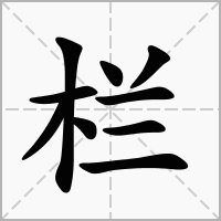 (形声。从木,阑( lán)声。“栏”和“拦”都是后起字。“阑”用作名词时写作“栏”,用作动词时,写作“拦”。本义:栏杆)